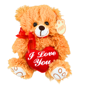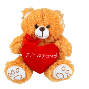 Αρκουδάκι Καφέ Με Καρδιά "Σ 'αγαπώ" και Φιόγκο Λούτρινο 25cm