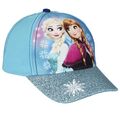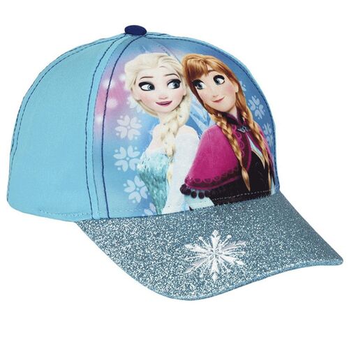 Ένα πανέμορφο καλοκαιρινό καπέλο, σχεδιασμένο με τις αγαπημένες ηρωίδες : Άννα και Έλσα, από τη δημοφιλή ταινία " Frozen " ! Το καπέλο στην περιοχή του κεφαλιού είναι γαλάζιου χρώματος, το μπροστινό μέρος είναι μπλε και απεικονίζονται η Έλσα και η Άννα. Το καπέλο διαθέτει γείσο, ασημί-γαλάζιου χρώματος με γκλίτερ. Η λειτουργικότητα του γείσου είναι για την προστασία του προσώπου από τον ήλιο. Στο πίσω μέρος του καπέλου υπάρχει αυξομειωτικό λουράκι σκούρου μπλε χρώματος, με την μορφή Κριτς-Κρατς, ώστε να εφαρμόζει σωστά στο κεφάλι.