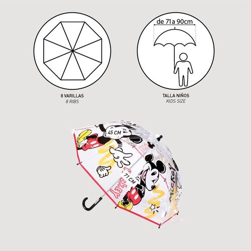 Παιδική Ομπρέλα Διαφανής Mickey Mouse Μαύρο Κόκκινο Χρώμα