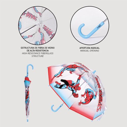 Παιδική Ομπρέλα Μπαστούνι Διάφανη Spiderman Κόκκινη Γαλάζιο Χρώμα
