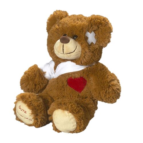 Ένα χαριτωμένο καφέ αρκουδάκι με μπεζ μουσούδα και πατουσάκια, έχει τραύματα και επιδέσμους, ενώ στο στέρνο του έχει μία κατακόκκινη καρδιά ! Ένα γλυκύτατο δώρο για τη γιορτή των ερωτευμένων !