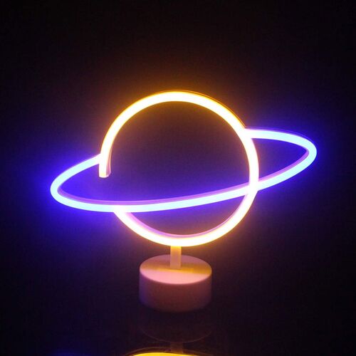 Επιτραπέζιο Διακοσμητικό Φωτιστικό Neon Μπαταρίας Πλανήτης Λευκό Χρώμα