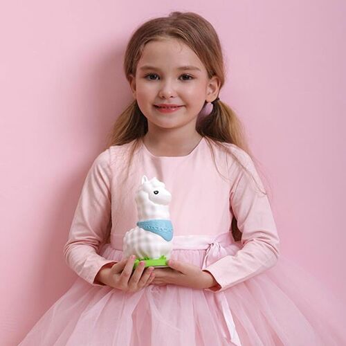 Χαριτωμένο λαμπερό λάμα για να φωτίζει τις βραδινές ιστορίες. Ένα χρήσιμο και αξιολάτρευτο νυχτερινό φως που θα διακοσμήσει τα παιδικά δωμάτια, ενώ θα τα ξεναγήσει τα παιδιά στην αγκαλιά της Μορφέας.