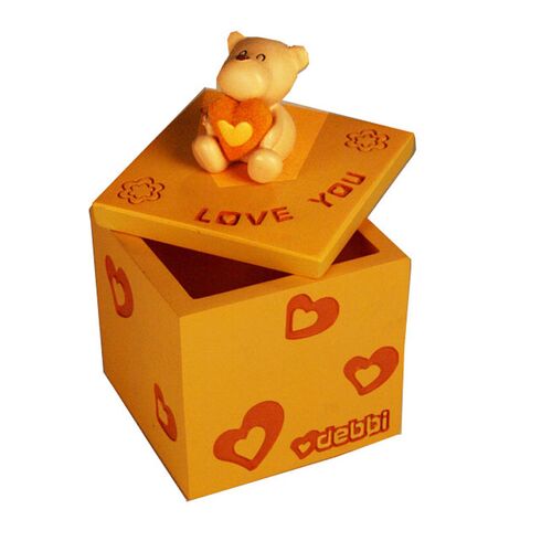 Μπιζουτιέρα Debbi σεσχήμα κύβου με καρδιές και ανάγλυφες φράσεις ( I LoveYou, Debbie) και σχέδια, ενώ τρισδιάτα εμφανίζεται η Debbi στο καπάκι.