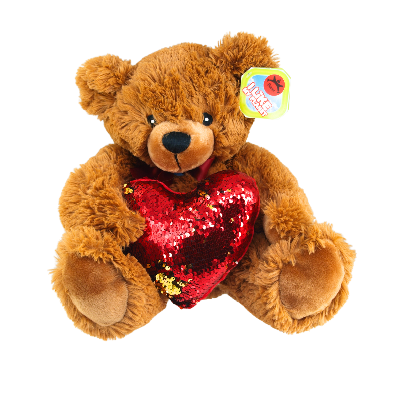 Αρκουδάκι Καφέ Με Καρδία Sequin Πούλιες Λούτρινο 40cm