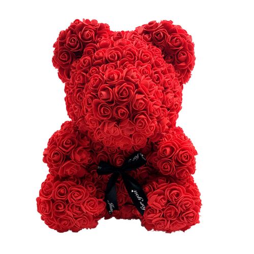 Μεγάλο αρκουδάκι από τεχνητά τριαντάφυλλα Rose Bear Κόκκινο σε εντυπωσιακή συσκευασία δώρου.