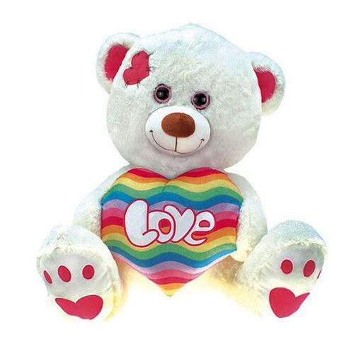 Αρκουδάκι Λούτρινο Με Καρδιά Ουράνιο Τόξο 20cm Αγ. Βαλεντίνου