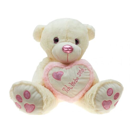 Αρκουδάκι Λούτρινο Μπεζ με Ροζ Καρδιά Χρώμα 30cm Αγ. Βαλεντίνου