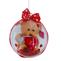 Ένα χαριτωμένο αρκουδάκι κρατάει στα χέρια του μία κόκκινη καρδιά, όπου πάνω της αναγράφεται η φράση " Love" μέσα σε μια διάφανη μπάλα με πολλές καρδίες ! Ένα γλυκύτατο δώρο για τη γιορτή των ερωτευμένων !