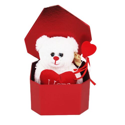 Κουτί Δώρου με Λευκό Αρκουδάκι Αγίου Βαλεντίνου