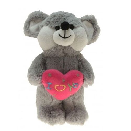 Ποντικάκι Γκρι με Ροζ Καρδιά Λούτρινο 28cm