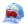 Ένα πανέμορφο καπέλο με τον αγαπημένο ήρωα, McQUEEN από τα "Cars" ! Το καπέλο στην περιοχή του κεφαλιού είναι χρώματος μπλε.Το καπέλο διαθέτει γείσο, η λειτουργικότητα του είναι για την προστασία του προσώπου από τον ήλιο. Στο πίσω μέρος του καπέλου υπάρχει Κριτς- Κρατς λουράκι, ώστε να εφαρμόζει σωστά στο κεφάλι.