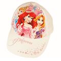 Ένα πανέμορφο καπέλο με την Ραπουνζέλ, την Άριελ Και τη Σταχτοπούτα "Πριγκίπισσες της Disney"! Το καπέλο στην περιοχή του κεφαλιού είναι λευκού χρώματος, στο μπροστινό μέρος απεικονίζονται : από αριστερά η Σταχτοπούτα, στη μέση η Άριελ και στα δεξιά η Ραπουνζέλ. Το καπέλο διαθέτει γείσο, όπου πάνω του αναγράφεται η λέξη με γυαλιστερά γράμματα και σχεδιάκια : " Princess ".Η λειτουργικότητα του γείσου είναι για την προστασία του προσώπου από τον ήλιο. Στο πίσω μέρος του καπέλου υπάρχει αυξομειωτικό λουράκι, με την μορφή Κριτς-Κρατς, ώστε να εφαρμόζει σωστά στο κεφάλι.