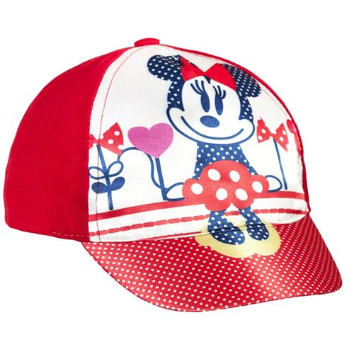 Ένα πανέμορφο καπέλο με την αγαπημένη ηρωίδα Minnie Mouse ! Το καπέλο στην περιοχή του κεφαλιού είναι χρώματος κόκκινου, το μπροστινό μέρος είναι λευκό και απεικονίζεται η Minnie. Το καπέλο διαθέτει γείσο, που είναι πουά, κόκκινου-λευκού χρώματος, η λειτουργικότητα του γείσου είναι για την προστασία του προσώπου από τον ήλιο. Στο πίσω μέρος του καπέλου υπάρχει αυξομειωτικό λουράκι, με την μορφή Κριτς-Κρατς, ώστε να εφαρμόζει σωστά στο κεφάλι.