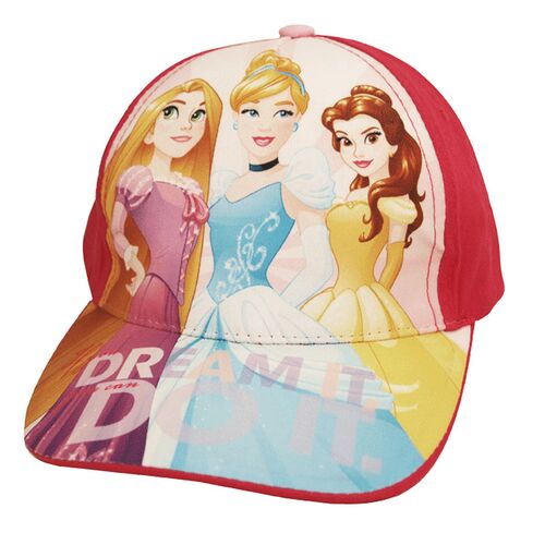 Ένα πανέμορφο καλοκαιρινό καπέλο, σχεδιασμένο με την αγαπημένες ηρωίδες : Πεντάμορφη, Σταχτοπούτα και Ραπουνζέλ ! Το καπέλο στην περιοχή του κεφαλιού είναι φούξια χρώμα, στο μπροστινό μέρος απεικονίζονται οι πριγκίπισσες. Το καπέλο διαθέτει γείσο, η λειτουργικότητα του είναι για την προστασία του προσώπου από τον ήλιο. Στο πίσω μέρος του καπέλου υπάρχει αυξομειωτικό λουράκι ροζ χρώματος, με την μορφή Κριτς-Κρατς, ώστε να εφαρμόζει σωστά στο κεφάλι.