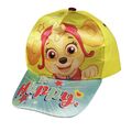 Ένα πανέμορφο καπέλο με την αγαπημένη ηρωίδα, Σκάι από τα " Paw Patrol " ! Το καπέλο στην περιοχή του κεφαλιού είναι χρώματος κίτρινο , το μπροστινό μέρος είναι κίτρινο ιρισίζων και απεικονίζεται η Σκάι. Το καπέλο διαθέτει γείσο, γαλάζιο κι αναγράφεται η φράση με πολύχρωμα γράμματα "Be Haappy", η λειτουργικότητα του είναι για την προστασία του προσώπου από τον ήλιο. Στο πίσω μέρος του καπέλου υπάρχει αυξομειωτικό λουράκι, με την μορφή Κριτς-Κρατς, ώστε να εφαρμόζει σωστά στο κεφάλι. Επιπλέον έχει μοβ λεπτομέριες.