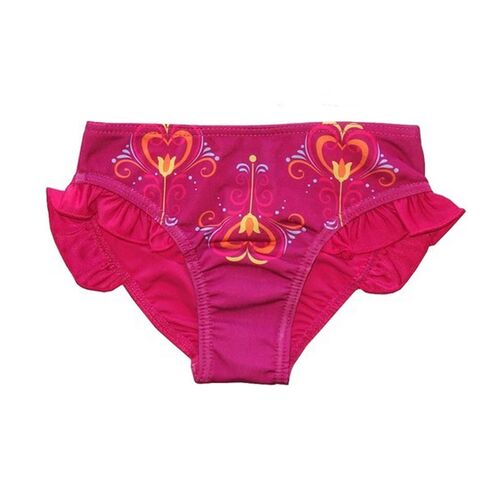 Ένα κοριτσίστικο μαγιό μπικίνι, με τις Έλσα Και Άννα ! Στο πάνω μέρος του μαγιό είναι τριγωνάκι, απεικονίζονται η Έλσα Και η Άννα με πλούσια μοβ βολάν στο μπούστο, τα περιγράμματα και τα ραντάκια είναι μοβ χρώματος. Το κάτω μέρος είναι σλιπ, το μπροστινό μέρος είναι φούξια με σχέδια και υπάρχουν πλούσια μοβ βολάν, το πίσω μέρος είναι μοβ. Ιδανικό για την παραλία, αλλά και για τις αθλητικές δραστηριότητες όλον τον χρόνο!