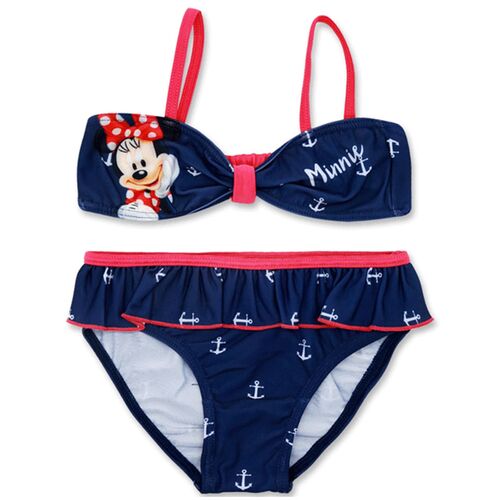 Ένα κοριτσίστικο μαγιό μπικίνι με την Minnie ! Στο πάνω μέρος του μαγιό, απεικονίζεται η Minnie σε μπλε φόντο και έχει διάσπαρτα άγκυρες, τα ραντάκια είναι φουξια χρώματος και στο πίσω μέρος έχει λάστιχο. Το κάτω μέρος είναι σλιπ μπλε κ και έχει πλούσιο ροζ βολάν με μπλε λεπτομέρειες. Ιδανικό για την παραλία, αλλά και για τις αθλητικές δραστηριότητες όλον τον χρόνο!