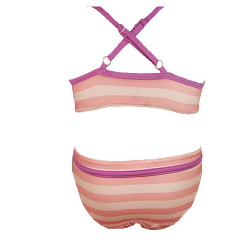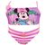 H Minnie σε ένα μπικίνι που θα λατρέψετε!!! Το πάνω μέρος του είναι μοβ και απεικονίζει την Minnie να φοράει ένα μπλε πουά φόρεμα και να απολαμβάνει ένα ρόφημα από πίσω της υπάρχουν φοίνικες. Τα ραντάκια είναι ροζ απαλό κι έχει ένα λουλούδι στα δεξιά, πίσω τα ραντάκια κάνουν χιαστί. Επιπλέον τα ραντάκια έχουν ρυθμιστή ράντας. Το κάτω μέρος είναι σλιπ ριγέ μοβ με λευκό κι έχει ροζ ζωνάκι που στη μέση υπάρχει ένα λουλούδι. Τα λάστιχα του μαγιό είναι μαλακά, ώστε να μην ενοχλούν το παιδί.