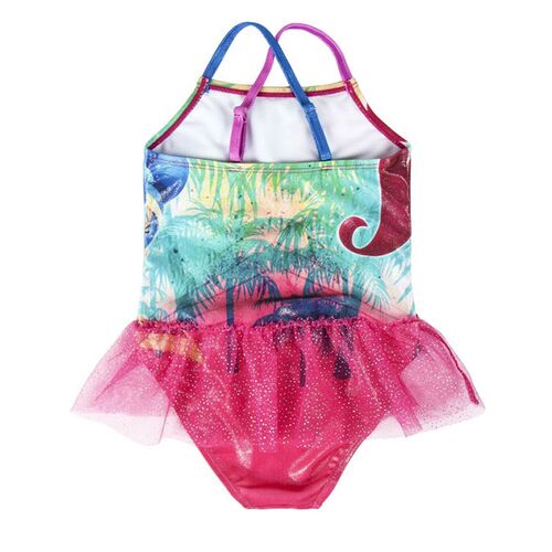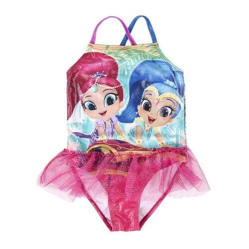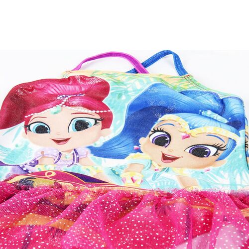 Ένα κοριτσίστικο μαγιό , με τα τζίνι Σίμερ και Σάιν! Στο μπροστινό μέρος απεικονίζονται οι Shimmer & Shine , Στην μέση υπάρχει μια φούστα με γκλίτερ που θυμίζει τουνίκ! Το ύφασμα του ολόσωμου είναι μεταλιζέ Ιδανικό για την παραλία, αλλά και για τις αθλητικές δραστηριότητες όλον τον χειμώνα!