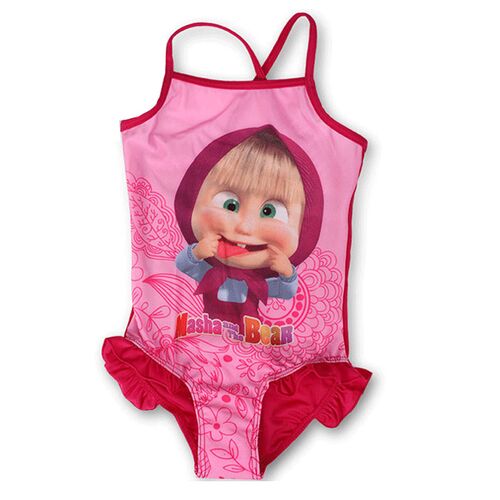 Ένα κοριτσίστικο μαγιό ολόσωμο, με τη Μάσα από την παιδική ταινία, η Μάσα και ο Αρκούδος! Το μαγιό είναι σε ροζ, μωβ χρώμα. Τα ραντάκια είναι χιαστί στην πλάτη! Ιδανικό για την παραλία, αλλά και για τις αθλητικές δραστηριότητες όλον τον χειμώνα!