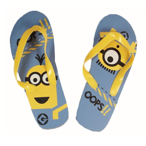Οι σαγιονάρες είναι σχεδιασμένες με ήρωες από τα Minions σε μπλε φόντο με κίτρινο λουράκι.