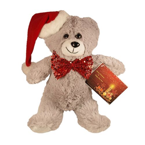 Αρκουδάκι Γκρι Mε Σκούφο Άγιου Βασίλη Λούτρινο 28cm