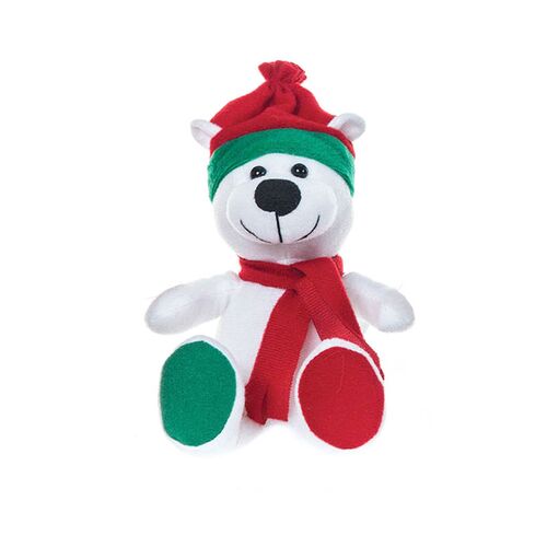 Αρκουδάκι Λευκό με Κασκόλ και Σκούφο Χριστουγεννιάτικο Λούτρινο 15cm