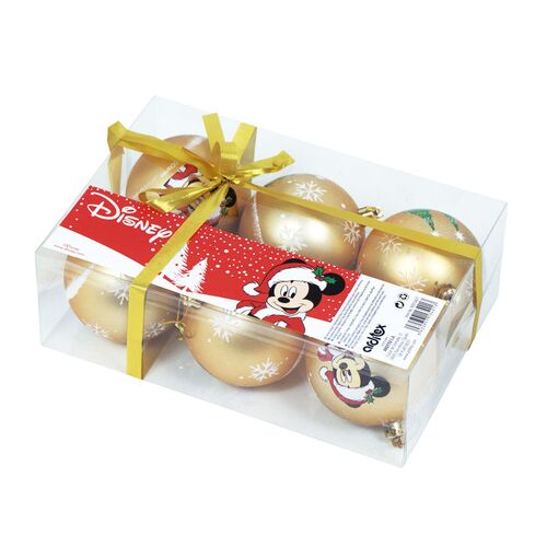 Mickey Mouse Χριστουγεννιάτικες Μπάλες Σετ 6 τεμαχίων Χρυσό Χρώμα 8cm