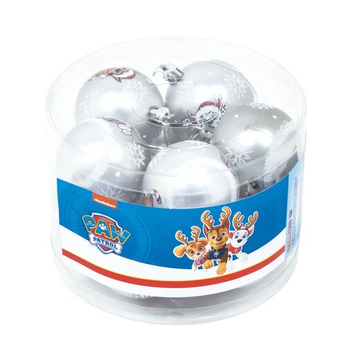 Paw Patrol Χριστουγεννιάτικες Μπάλες Σετ 10 τεμαχίων Ασημί Χρώμα 6cm