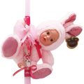 Πασχαλινή Λαμπάδα Παιχνίδι Μωρό Ντυμένο Λαγουδάκι Ροζ Χρώμα Λούτρινο 21cm