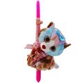 Γατούλα με μεγάλα χρυσαφί γυαλιστερά μάτια. Η γατούλα είναι στις αποχρώσεις του καφέ-γαλάζιου-ροζ-μπεζ, το εσωτερικό των αυτιών της είναι καφέ, ενώ η μουσούδα της και η κοιλιά της είναι λευκού χρώματος. Το ζωάκι φοράει ένα γαλάζιο σατέν φιόγκο στο κεφάλι. Πρόκειται για ένα μαλακό και ελαφρύ λουτρινο που φωλιάζει ευχάριστα στην αγκαλιά! Τα μάτια του είναι πλαστικά και έχει απαλή γούνα.