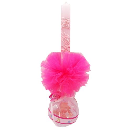 Πασχαλινή Λαμπάδα Κρεμαστή Κούκλα Μωρό Φούξια Ρούχα