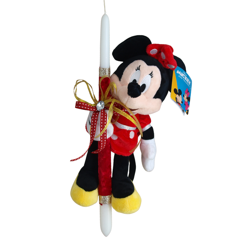 Πασχαλινή Λαμπάδα Minnie Mouse με Κόκκινο Φόρεμα Λούτρινο 30cm