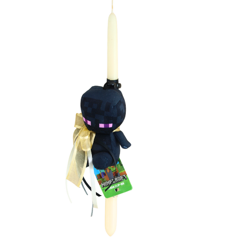 Η πασχαλινή λαμπάδα συνοδεύεται από ένα λούτρινο μπρελόκ που απεικονίζει τον Enderman, έναν μυστηριώδη και αγαπητό χαρακτήρα από τον κόσμο του Minecraft. Το λούτρινο είναι στερεωμένο πάνω στη λαμπάδα και διακοσμείται με πασχαλινά στοιχεία και κορδέλες.
