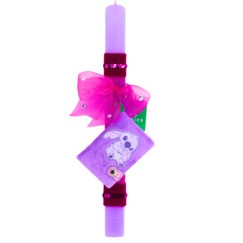 Πασχαλινή Λαμπάδα πλακέ μοβ με μοβ σημειωματάριο Stitch