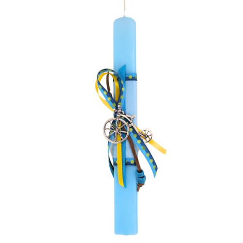 Πασχαλινή Λαμπάδα σιελ πλακέ κερί με Διακοσμητικό μεταλλικό ποδηλατάκι
