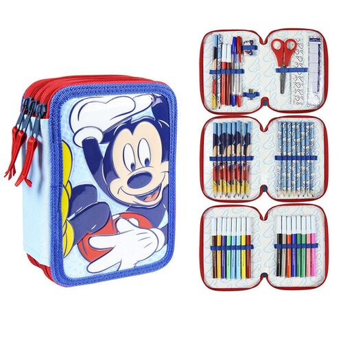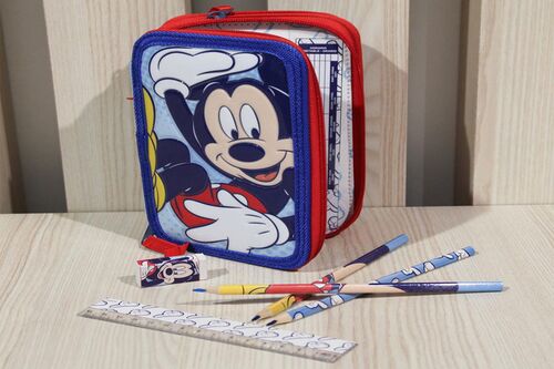 Κασετίνα Σχολική Τριπλή Γεμάτη Mickey Mouse Μπλε Χρώμα Disney