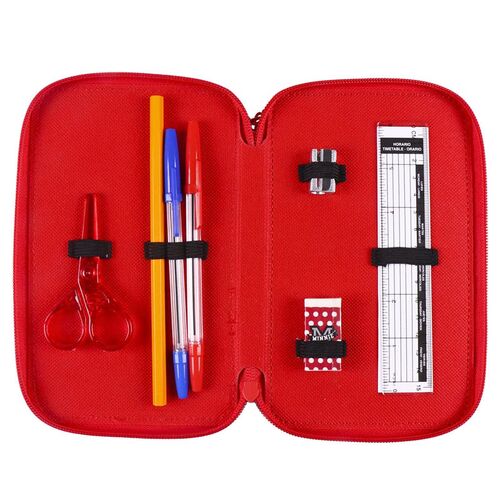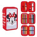 Κασετίνα Τριπλή Γεμάτη Γραφική Ύλη Minnie Mouse Κόκκινο Πουά Χρώμα