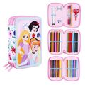 Κασετίνα Τριπλή Γεμάτη Γραφική Ύλη Πριγκίπισσες Disney Ροζ Γαλάζιο Χρώμα