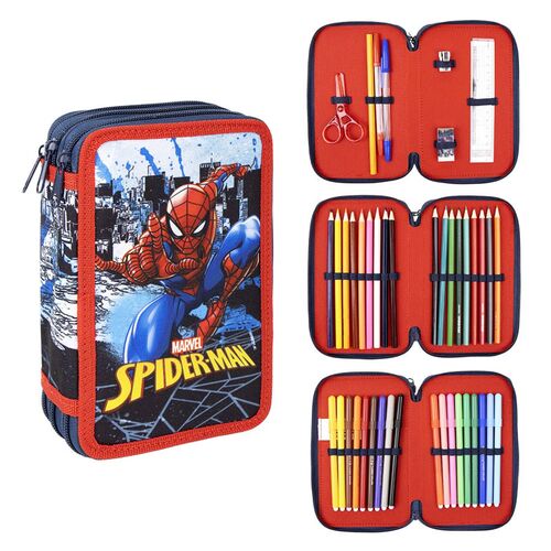 Κασετίνα Τριπλή Γεμάτη Γραφική Ύλη Spiderman Marvel Κόκκινο, Μπλε και Μαύρο Χρώμα
