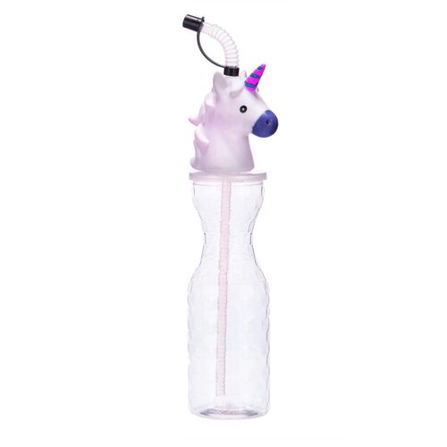 Παιδικό Πλαστικό Μπουκάλι Νερού με Καλαμάκι Μονόκερος Λευκό Χρώμα 500ml