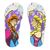 Οι ηρωίδες της Disney, Έλσα και Άννα, απεικονισμένες σε παιδικές σαγιονάρες, σε λευκό με μοβ σχέδια φόντο και με μοβ λουράκι. Ιδανικές για το παιχνίδι, την παραλία, το σπίτι και τις παιδικές δραστηριότητες.
