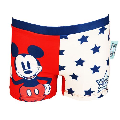 Το μαγιό είναι μποξεράκι, χρώματος κόκκινο. Το μπροστινό μέρος στα δεξιά έχει τον Mickey μέσα σε κόκκινο φόντο , στα αριστερά είναι λευκό με μπλε αστέρια. Από πίσω το μαγιό είναι όλο κόκκινο και το λάστιχο του είναι μπλε.Το μαγιό έχει μαλακό λάστιχο, έτσι ώστε να είναι σταθερό πάνω στο παιδί, άλλα και να μην το ενοχλεί.