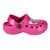 Η ηρωίδα της Disney σε δράση, απεικονισμένη σε παιδικά σαμπό τύπου Crocs, σε κόκκινο φόντο με κόκκινο λουράκι, συντροφεύουν τα κορίτσια στο παιχνίδι, στην παραλία στο σπίτι και στις παιδικές δραστηριότητες.