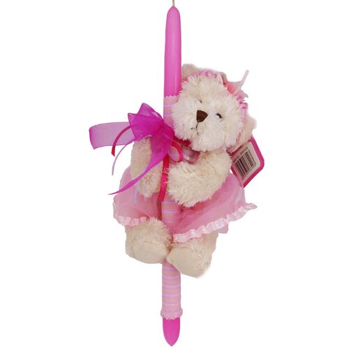 Πασχαλινή Λαμπάδα Αρκουδάκι Μπαλαρίνα Ροζ Ρούχα Λούτρινο 20cm