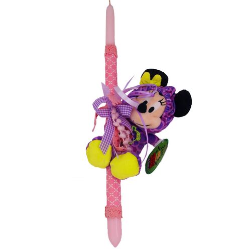Πασχαλινή Λαμπάδα Minnie Mouse Ντυμένη με Φόρμα Σταφύλι Μοβ Χρώμα Λούτρινο 18cm
