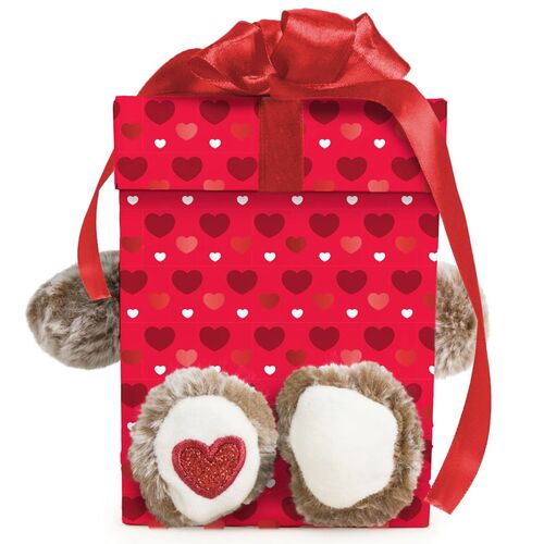 Αρκουδάκι Γκρι Μέσα σε Κόκκινο Κουτί Happy Valentines Λούτρινο 25cm
