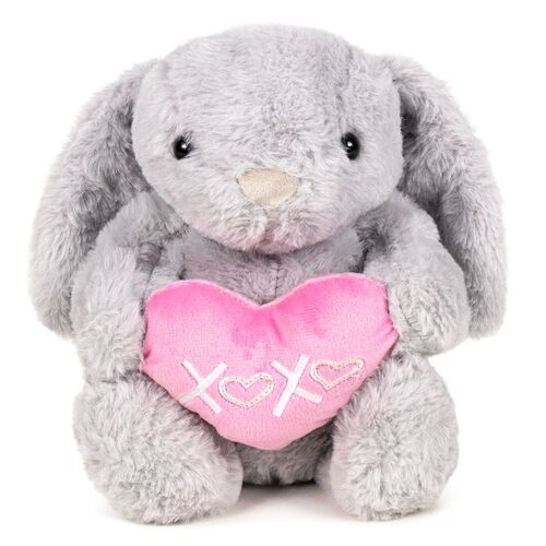Λαγουδάκι Γκρι Με Καρδιά Ροζ Λούτρινο 24cm