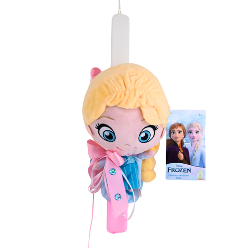 Πασχαλινή Λαμπάδα Με Πλακέ Δίχρωμο Κερί Έλσα με Ήχο Frozen Λούτρινο 20cm